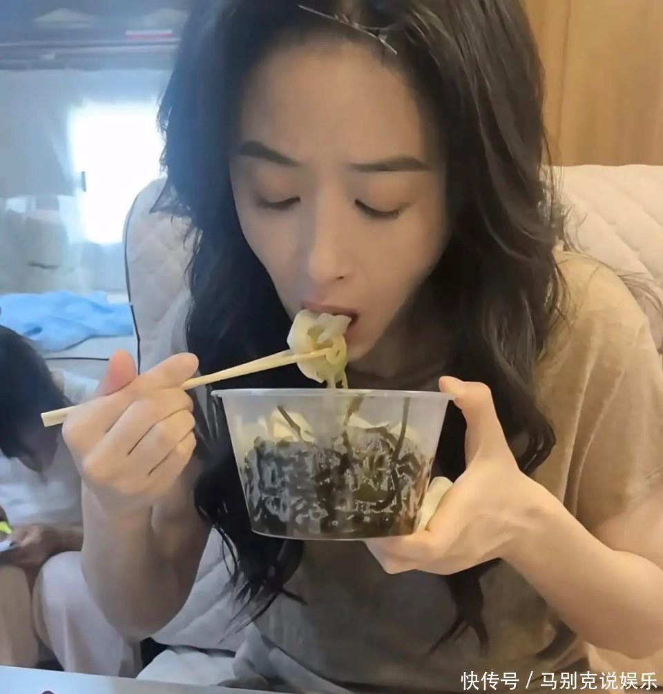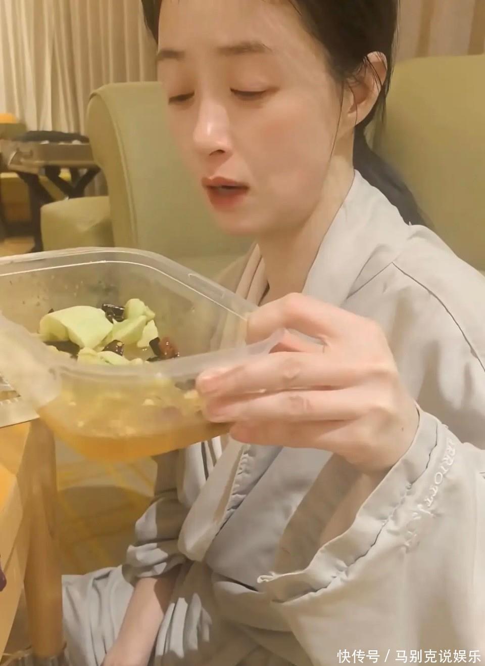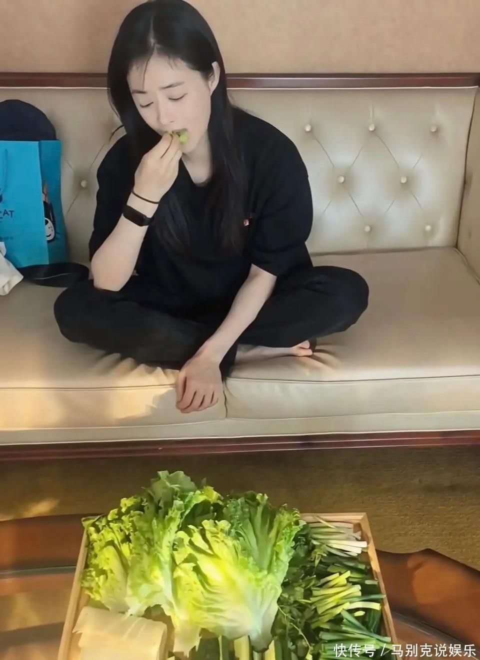 某次在节目中有工作人员吃炸鸡,她也只是简单的抓了一点放在嘴里,只此一口,再不敢多吃。