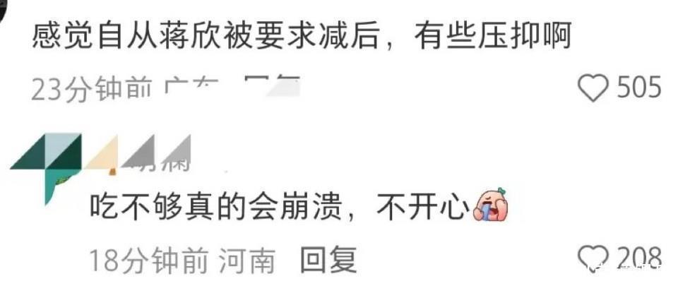 网友也在评论区纷纷留言表示对蒋欣的心疼,毕竟蒋欣是第一个在娱乐圈中因为节食减肥而饿哭的明星。