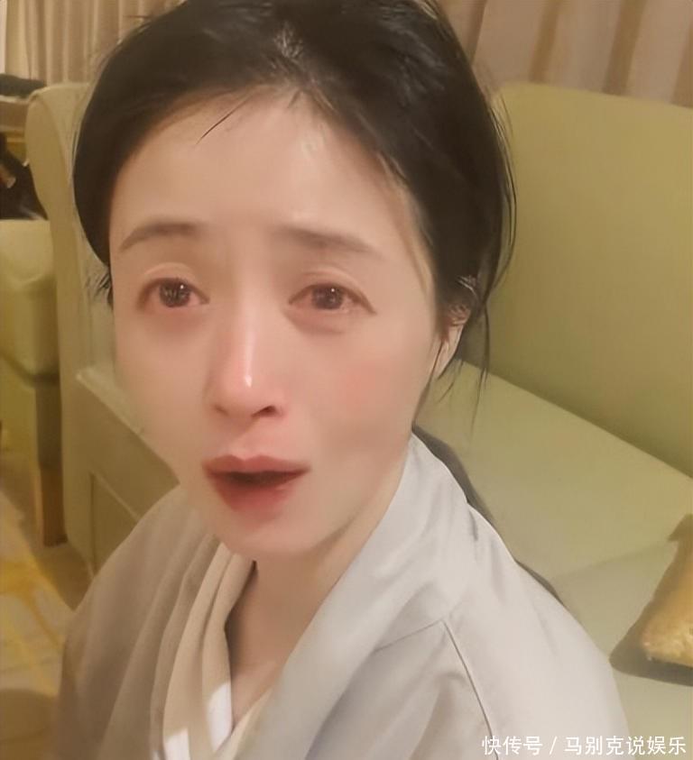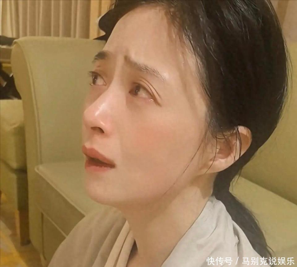 发型也是随意挽起,而比蒋欣的外表更引人注意的是她眼角挂着的泪痕。